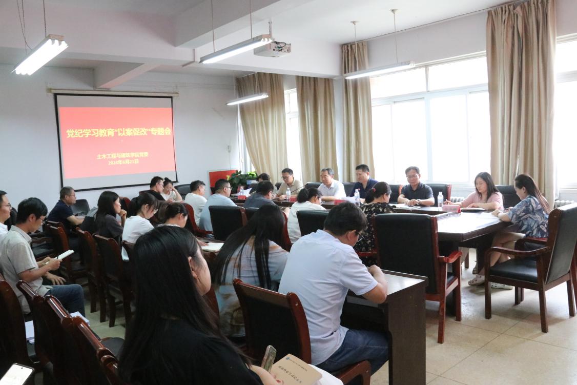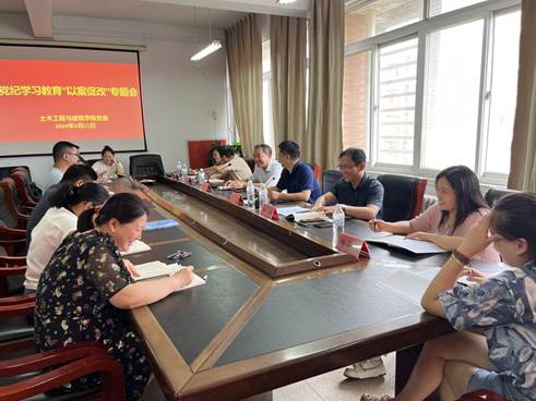 会上,汤沛书记首先传达了《关于在党纪学习教育中用典型案例开展以案促改工作的通知》文件精神,然后土建学院班子成员分别领学了“学纪学习教育以案促改典型案例选编”中的案例一至案例八,并结合自身工作进行交流发言。土建学院书记汤沛强调,历史的镜鉴告诫我们,触犯纪律没有回旋余地,遵守纪律没有时间盲区,执行纪律没有人情可讲,必须时时刻刻绷紧法纪弦,不碰高压线,加强学习积累,注重时刻磨炼,多一些自控,少一些侥幸,多一点理智,少一点冲动,切实养成遵规守纪的好习惯;院长潘林指出树牢底线思维、严守纪律规矩;副书记袁大伟从纪检委员的角度谈了自己的看法,要共同打造风清气正的校园环境;副院长马芸倡议党员干部要发扬艰苦奋斗、勤以养德、俭以助廉的优良传统;副院长杨萃娜结合专业教学,从加强党的纪律建设,提升党员和教师的政治素质的角度分享自己的心得体会。