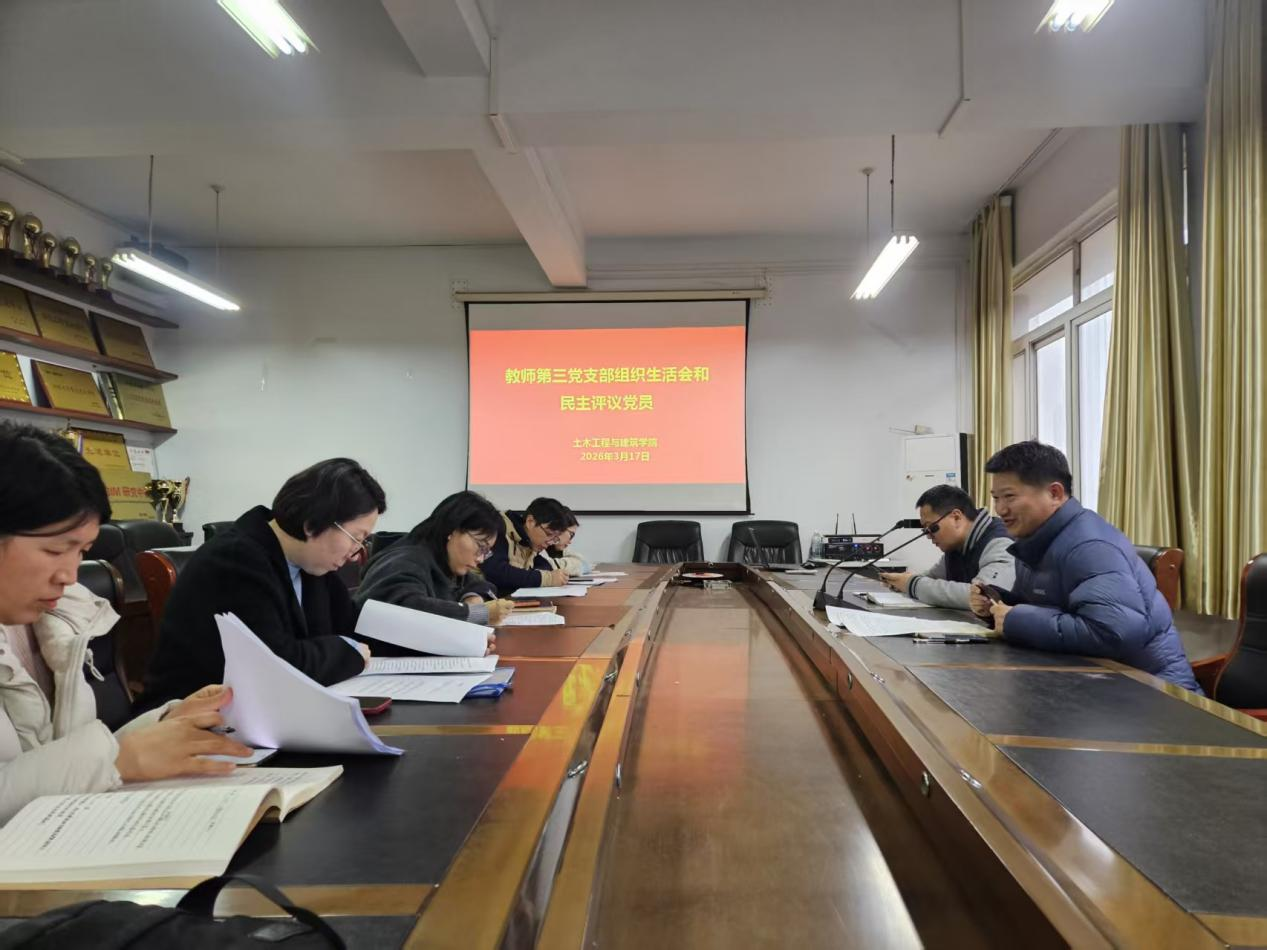 为进一步提升党支部的凝聚力和战斗力,严格党员教育管理,根据上级党组织统一部署,教师第三教党支部于2026年3月17日召开了2025年度组织生活会,并开展民主评议党员工作。会议由支部书记庄静静主持,党委书记汤沛、副书记袁大伟以普通党员身份参加了此次组织生活会。