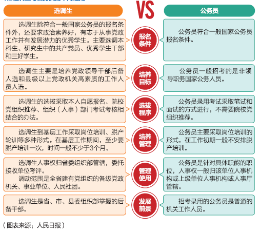 选调生,是各省区市党委组织部门有计划地从高等院校选调品学兼优的应届大学本科及其以上毕业生,选拔具有2年以上基层工作经历的大学生 “村官 ” 到基层工作,并作为党政领导干部后备人选和县级以上党政机关高素质的工作人员人选进行培养,经过考试直接录用为公务员,直接进入地方基层党政部门工作。