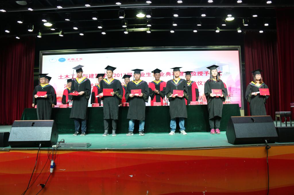 毕业典礼上,2017届优秀毕业生代表马金宝,在校生代表,首届“凯达奖助学金”获得者郑志鸿,优秀校友代表新乡艺修装饰工程有限公司总经理任修燚,教师代表张永才老师分别发言。河南省凯达建筑公司董事长,土建学院兼职教授王志伟先生作了热情洋溢的致辞,对首届“凯达奖助学金”获得者表示祝贺,并鼓励在校学子努力学习,成为优秀人才。