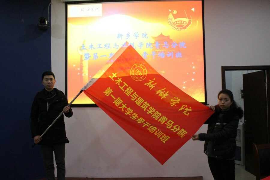 开班仪式在共青团团歌悠扬的旋律中开始,首先由新乡学院第七届青马学院学员杨召召同学宣读我院青马分院培养方案和纪律要求。接着由学员代表崔嘉懿同学发言,她代表青马班全体学员郑重承诺,一定刻苦学习,努力实践,甘于奉献,做马克思主义理论的青年实践者,做中国社会建设的栋梁之才。随后党总支书记黄家骏同志为我院青马分院暨第一期大学生骨干培训班进行授旗。最后黄书记做重要讲话,对青马分院提出了希望与要求,他希望大家能够深刻认识“青年马克思主义者培养工程”的重要性,作为青年马克思主义者继续坚定的理想信念,保持不骄不躁的优良作风。同时,预祝本期“青马班”圆满成功,祝各位学员学习愉快,学业有成。