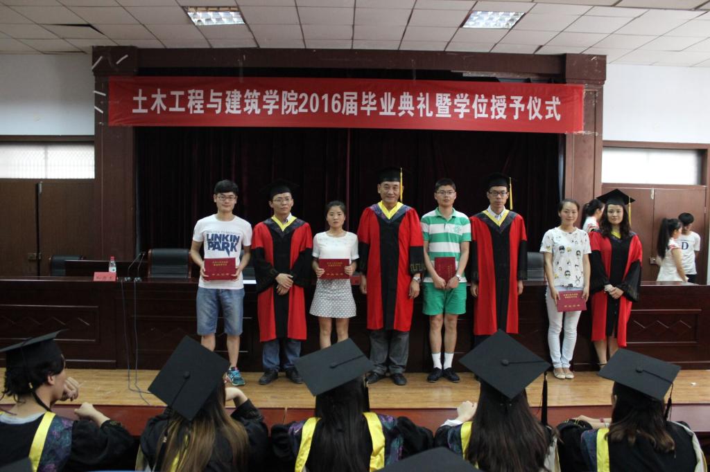 典礼在庄严的国歌声中开始,首先由我院党总支书记黄家骏宣布我院卓越毕业生3名,省级优秀毕业生12名,校级优秀毕业生50名人员名单;然后由副院长马芸宣布土木工程专业173名,交通工程专业90名,建筑环境与能源应用工程96名获得工学学士学位人员名单;接下来进行学位授予仪式,一个个身穿学士服的优秀毕业生从各位领导手中接过学位证书,接受拨穗礼并合影留念。之后,我院教师代表杨翠娜老师,优秀毕业生代表-卓越毕业生刘杰、我院往届优秀毕业生代表河南凯达建设刘国伟总经理分别发言,寄语毕业生前程似锦,会场掌声不断。最后,院长赵磊为大家做了重要讲话,希望毕业生们运用在校所学的知识和技能,尽快融入社会实践,完善自我、提升能力、服务社会、报效国家,他还表示,母校是毕业生永远的后盾,希望大家时刻心系母校,常回家看看。