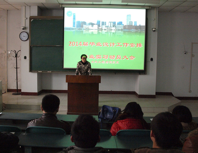 毕业实习和毕业论文是本科教学的一个重要环节,是培养学生实践能力的重要途径。在2014届毕业生即将参加毕业实习之际举行这次动员会,对学生了解要求、掌握方法具有重要的指导意义。