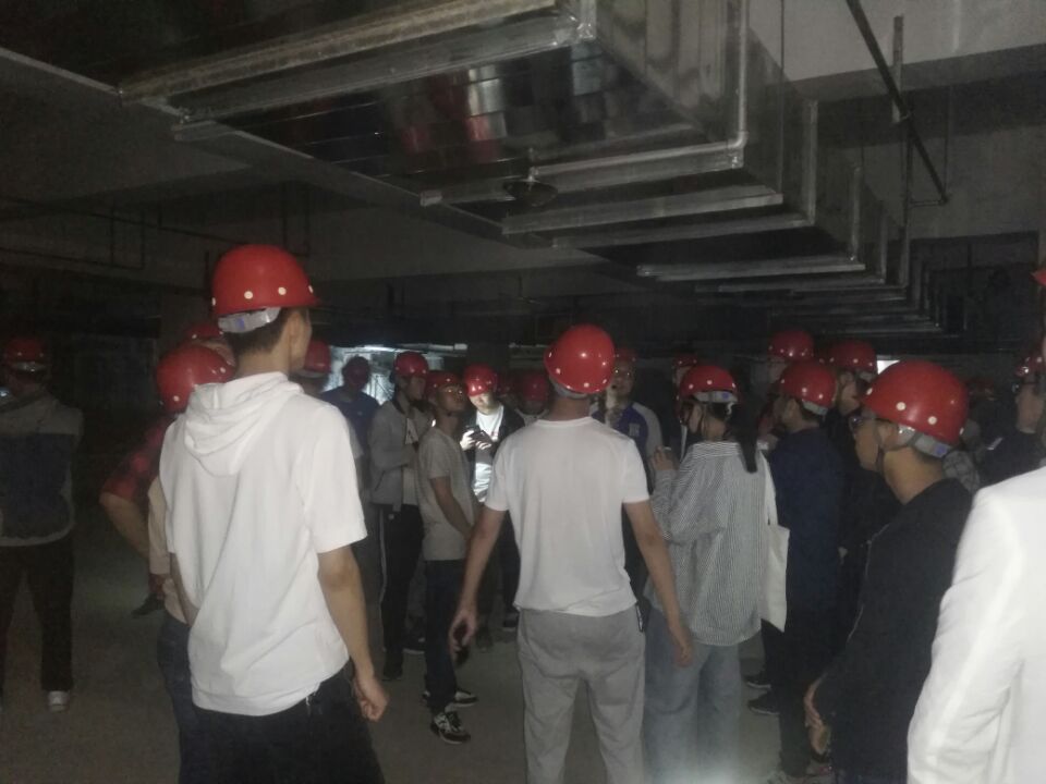 见习过程中,全体学生听从指导,正确佩戴安全帽,态度认真,在老师的细心讲解下,学生对医疗建筑、商业建筑和商住建筑的中央空调系统制冷机房、空调机房设备、管网系统和末端,消防泵房和消防水系统、生活给排水系统和设备,集中热水供暖系统、热交换站和末端设备,地下车库通风及排烟系统进行了认知见习。同时,学生也对见习过程中遇到的问题和老师进行了有效的沟通和交流。