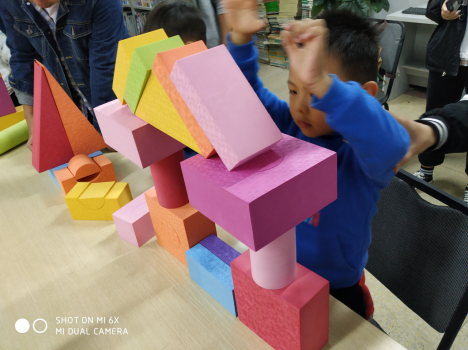 为配合校图书馆开展的儿童阅读推广系列活动,宋晶颖老师带领院图书部全体成员利用休息时间策划和举办了两场具有我院浓厚专业特色的以阅读与建构游戏为主的“小小建筑师”和通过智力魔板与学习卡片相结合方式为主题的“谁的房子最特别”儿童阅读活动。