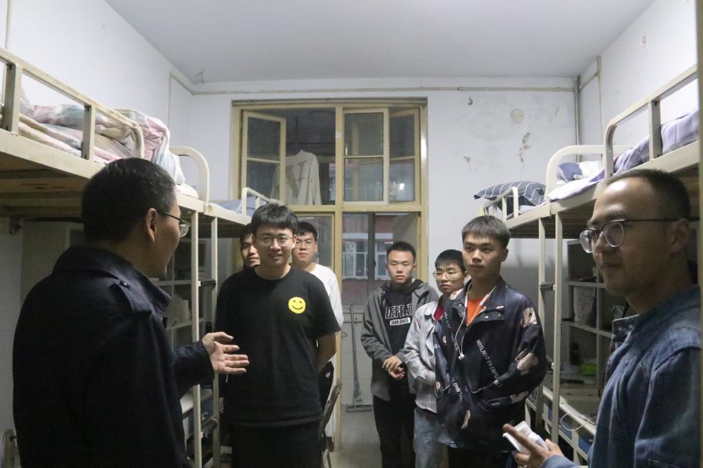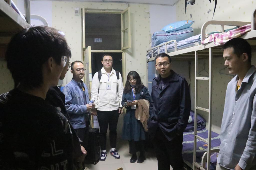 2021年10月11日下午,我院党委副书记袁大伟和新生辅导员张勋成老师、尚奇老师、买哲老师深入新生宿舍,慰问2021级新生。