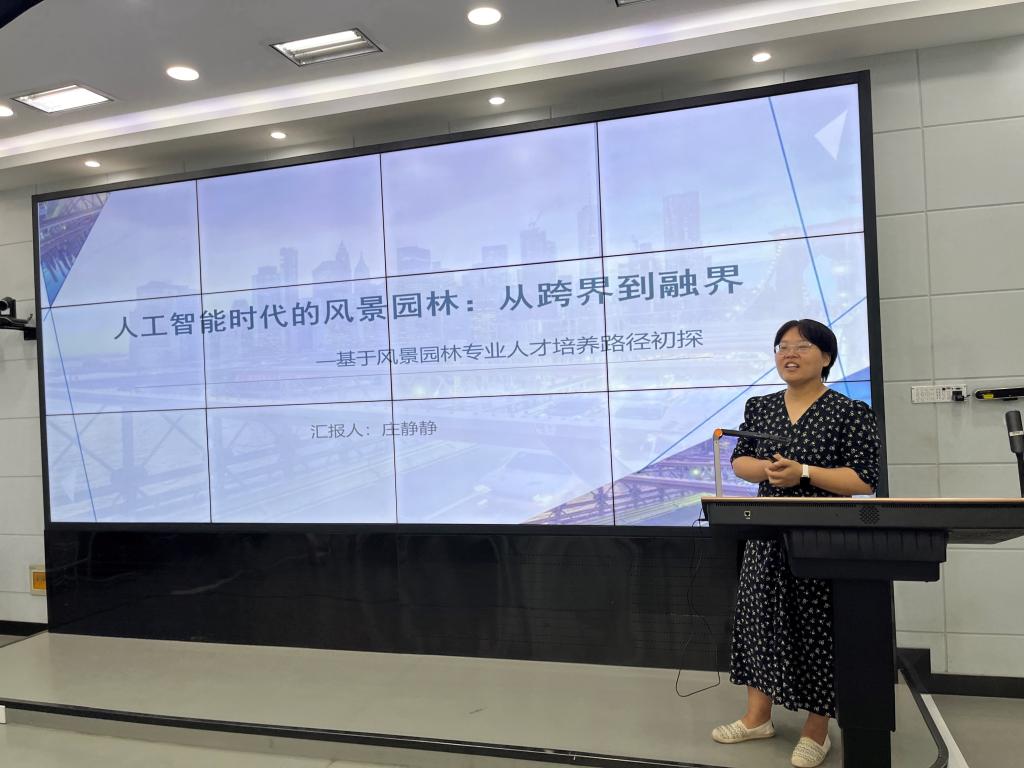 第二场专题讲座,由庄静静博士主讲,主题为《人工智能时代的风景园林:从跨界到融界》。庄博士讲述在信息化、智能化飞速发展的今天,人工智能(AI)技术的应用正在逐步拓宽至景观规划、设计、管理和维护等全产业链领域,标志着风景园林行业正经历着革命性的变革。庄博士以风景园林专业人才培养方案为依托,介绍了新工科下的教学转向、宽平台上的人才培养,从跨界到融界。最后提出以“人民城市”理念为引领的“三位一体”人才培养体系和以“大设计”理念为引领的多元融合课程体系建构。