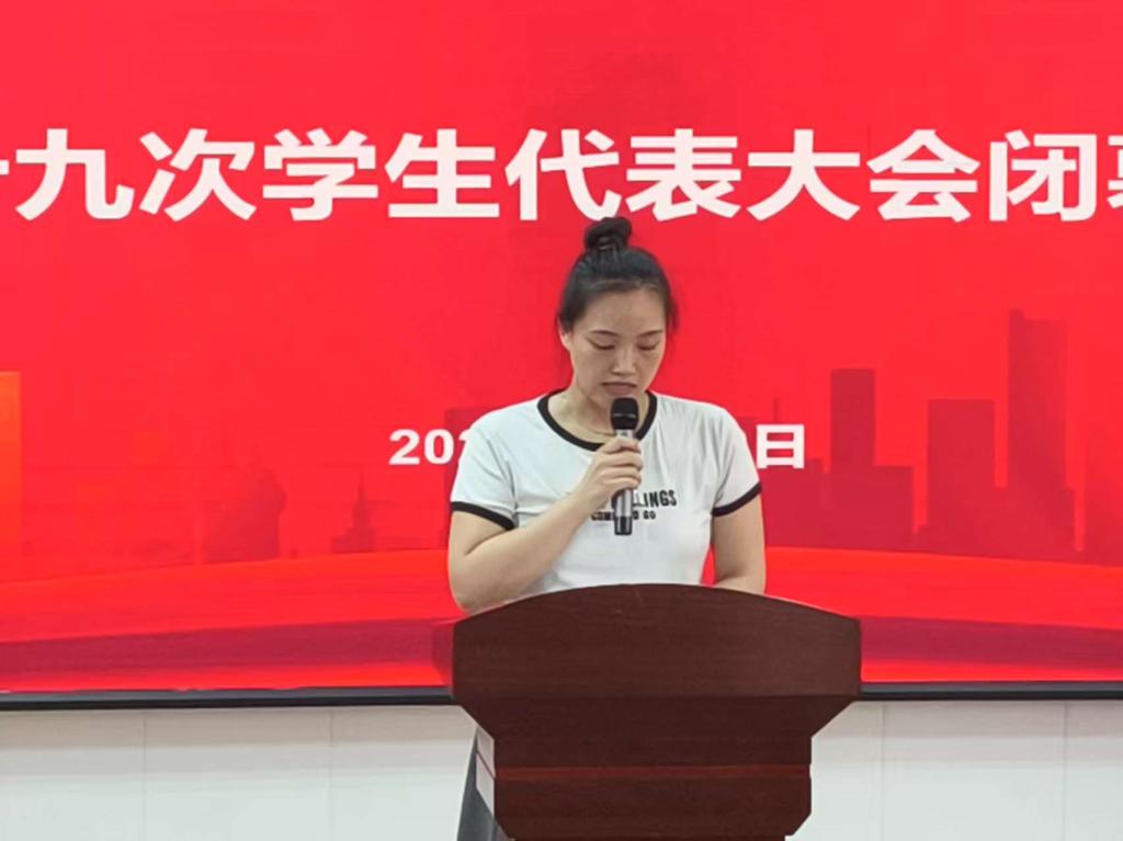 会议最后,宋紫阁致闭幕词。她对本次学生代表大会的各项工作顺利开展表示充分肯定,并对学生会今后的工作提出了殷切期望和明确要求:第一,要有理想,把坚定理想信念作为立身之本;第二,要敢担当,把自觉担当尽责作为成才之基;第三,要能吃苦,把不怕苦、肯吃苦、甘吃苦作为成长之途;第四,要肯奋斗,把不懈奋斗作为立功之要。最后,大会在激昂的国际歌声中圆满落下帷幕。