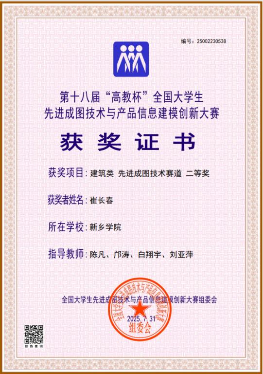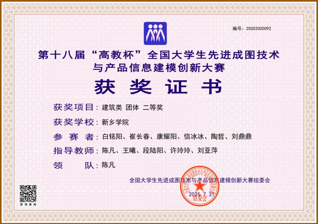 第十八届“高教杯”全国大学生先进成图技术与产品信息建模创新大赛于7月25日-28日在太原理工大学成功举办。大赛吸引了全国1001所高校的15265名选手参加,涵盖了机械类、建筑类、道桥类和水利类四个类别的团体竞赛和个人单项竞赛。betway西汉姆联官网陈凡、许玲玲、王曦、段陆阳、刘亚萍等8名教师和刘鼎鼎、白铭阳、崔长春、陶哲等7名学生组成的参赛团队在此次大赛中再创辉煌,荣获建筑类团体二等奖,分赛道二等奖2项,三等奖2项。