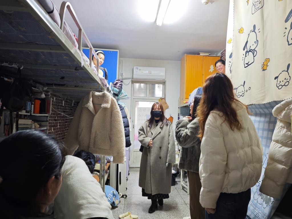 与此同时,女生宿舍楼的走访工作也在有序进行。辅导员杨晓玥、刘聪慧、银浩然深入各个楼层和寝室,与女同学们进行了温馨的交流。老师们重点了解了女生们的返校适应情况,关心大家的生活需求,提醒同学们注意春季流感预防,保持宿舍通风,养成良好的生活习惯。针对新学期可能面临的学业压力和人际交往问题,老师们也给予了耐心的开导和建议,鼓励同学们之间要互相关心、互相帮助,营造积极向上的宿舍氛围。对于发现的部分宿舍物品摆放杂乱等问题,老师们现场提出了整改意见,同学们积极配合,表示将立即改进。